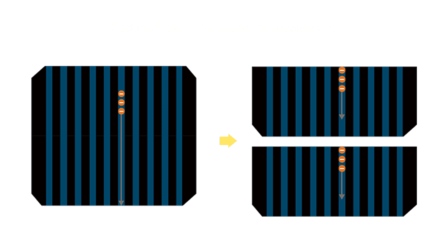 - 电池使用多条铜导线 (Copper wire) 于电池片上形成较短的电流路径,,,,提高电流收集效率,,,,采用圆形设计的铜导线较传统扁平式的铜焊带 (Ribbon),,,,可增加入射至电池的光线量。。