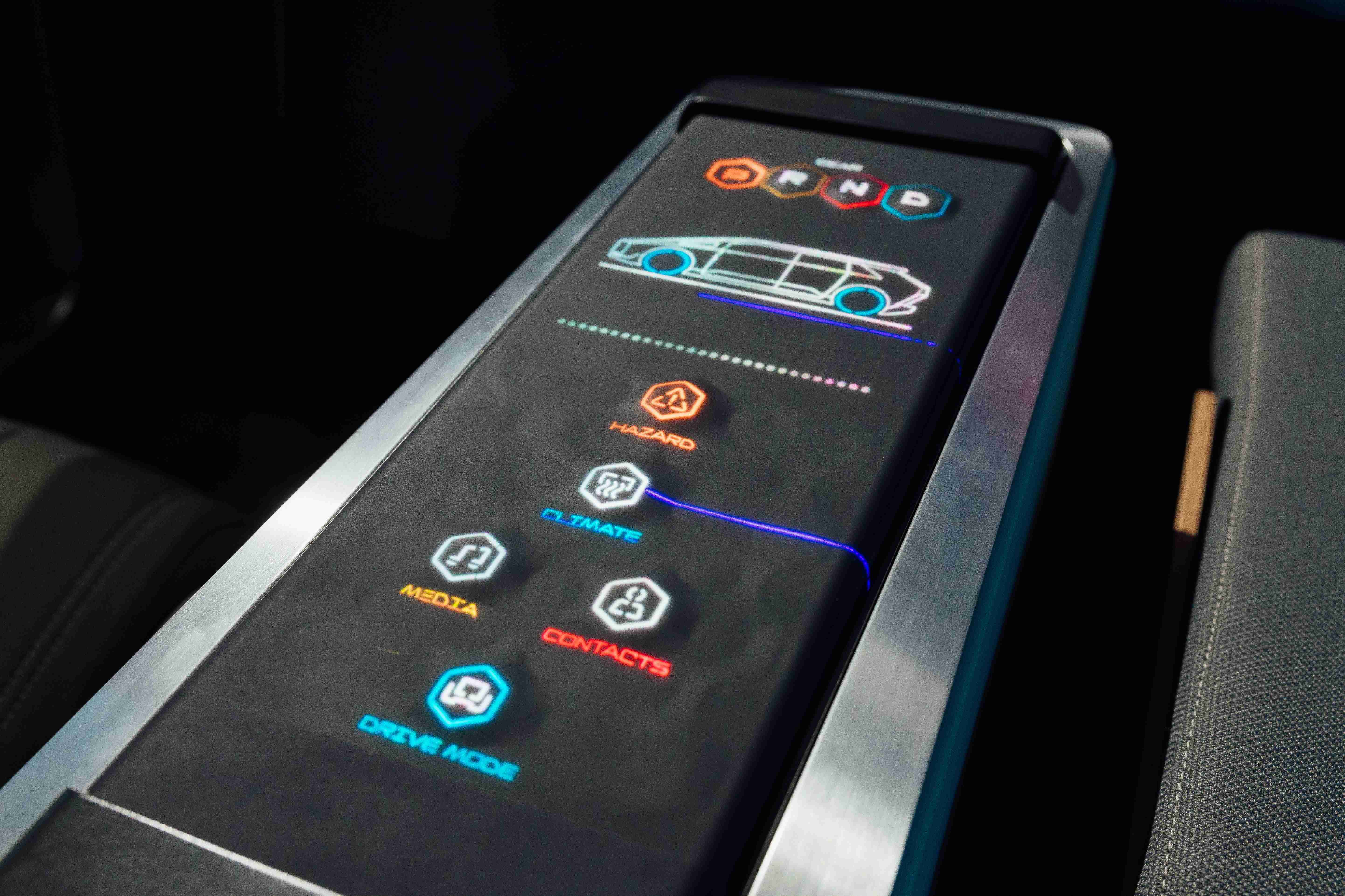 幻境全景天幕(Virtual Sky Canopy)将无缝拼接大型化的透明Micro LED显示器融入至天窗,,,,带来沉浸式体验,,,,将人机介面扩展至整个座舱。。。。 壹号平台光电以人性化的设计引领直觉式的人机互动,,透过多变形态中控显示(Morphing Center Control)、、、隐藏式智驾介面(Foldable Cruise Pilot)等解决方案,,,,让乘用者依据自身需求调整、、、、控制座舱内所需功能。。。