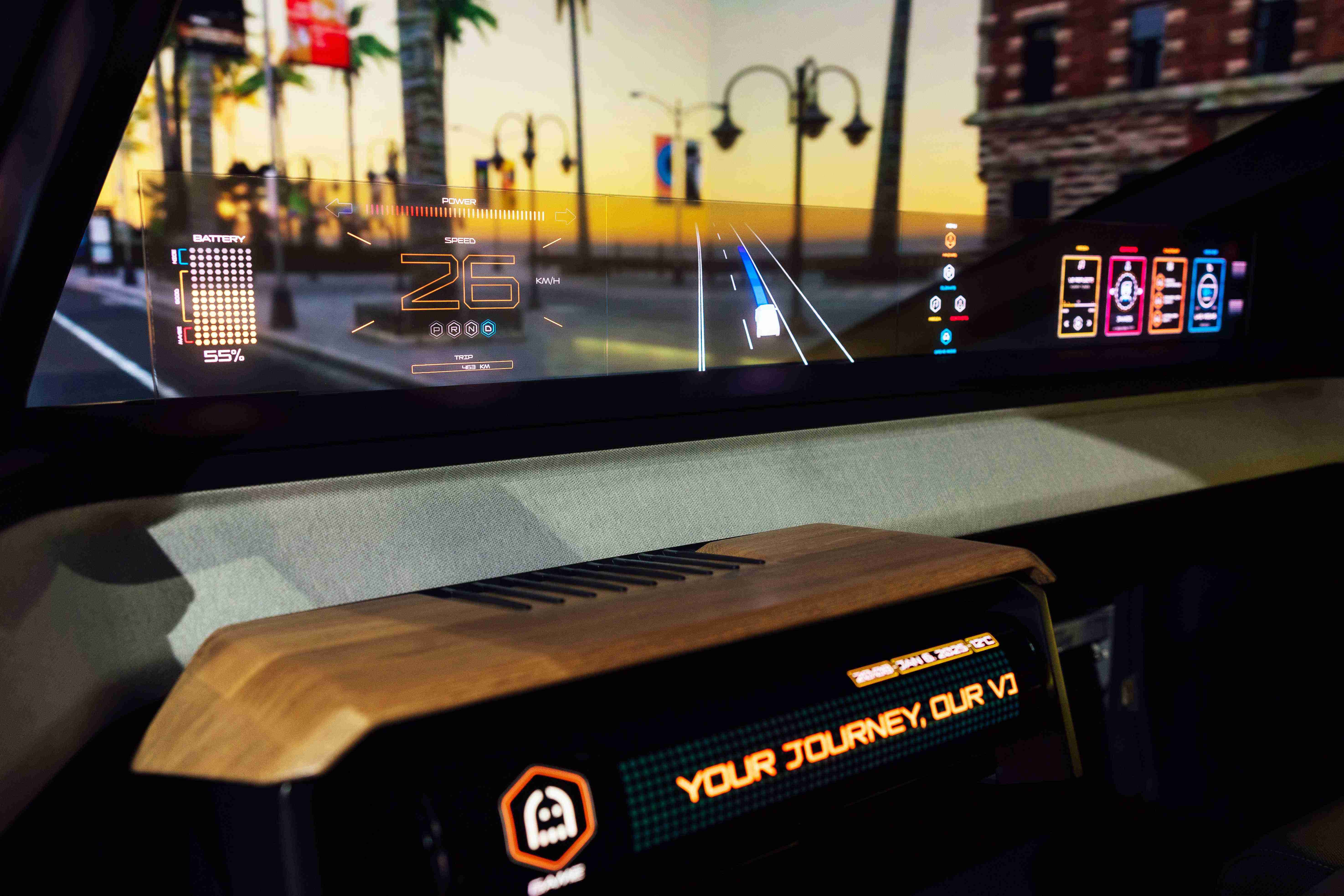 透过XR 互动智慧窗(XR Interactive Window)展现强大的运算能力,,,,搭配AI人工智慧自动生成运算,,,未来当车辆行经途中,,,只需在车窗上圈选对应之车外标的,,,,即可在萤幕中与其互动、、、、获取相关资讯,,让乘客享有身历其境、、互动式且逼真的体验。。