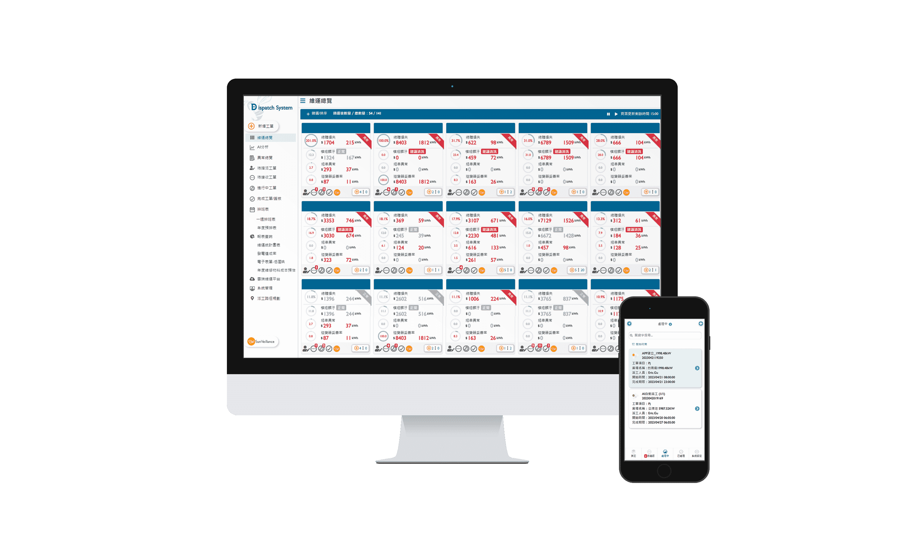 全流程运维管理包括云端监控工具、、AI分析与智慧自动派工及运维APP,,实现电厂自主管理。。。。